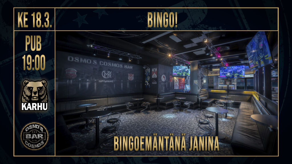 Osmo's Cosmos Bar sijaitsee Imatran keskustassa. Yli 700 asiakaspaikkaa kolmessa kerroksessa: yökerho, pubi, sporttibaari, karaoke, darts, biljardi, terassit, kabinetti ja sauna. TERVETULOA!