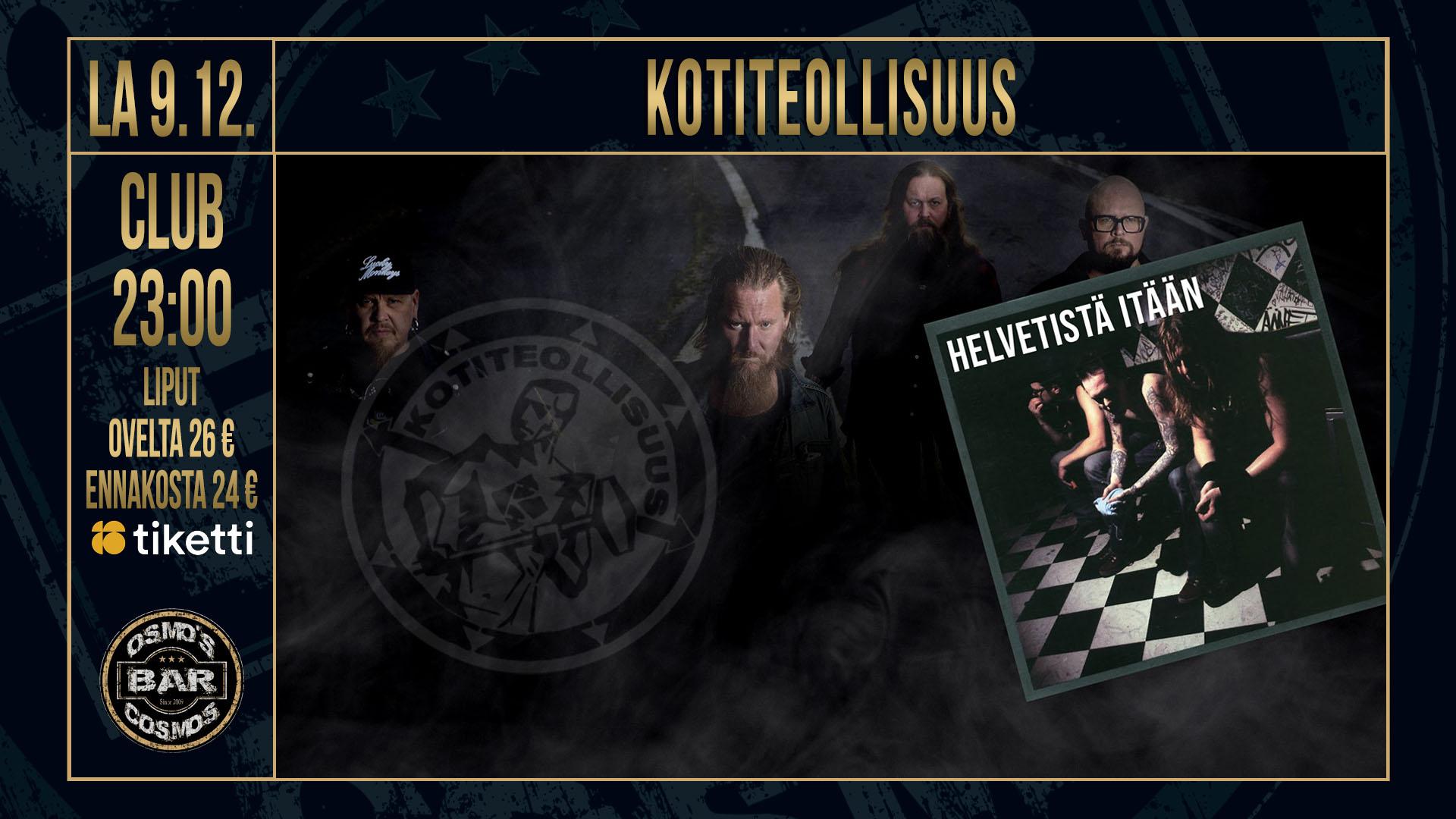 Raskaamman suomirokin kärkinimiin kuuluva Kotiteollisuus-yhtye tekee loppuvuodesta 2023 platinaa myyneen Helvetistä itään -albuminsa 20-vuotiskiertueen. Albumi on bändin kuudes studiolevy. Mikko Karmilan tuottama Helvetistä itään -albumi julkaistiin 2003 ja sisältää muun muassa kappaleet Tämän taivaan alla, Raudanlujat, Yö päivää keinuttaa, Helvetistä itään ja Minä olen. Keikalla kuullaan myös muuta Kotiteollisuuden pitkällä uralla levyttämää materiaalia.