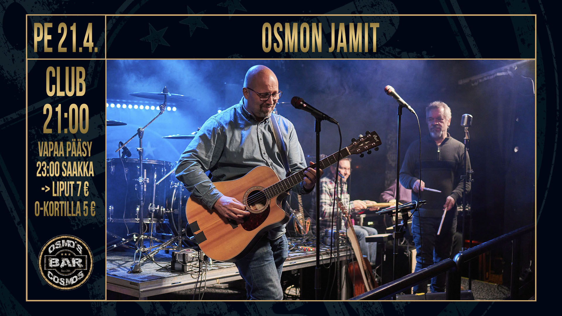 Pe 21.4. klo 21:00 – 24:00 (club) Osmon Jami-ilta, vapaa pääsy 23:00 saakka -> liput 7 € (O-kortilla 5 €) 24:00 Dj.