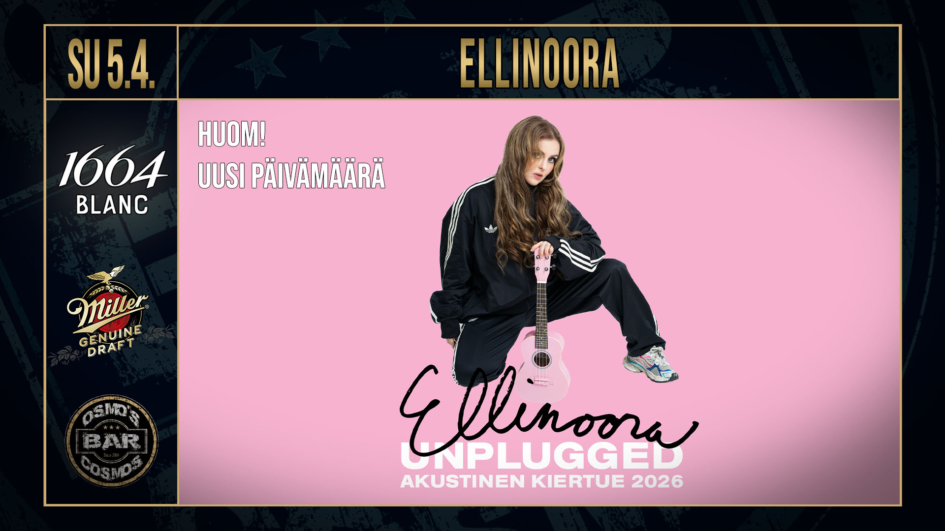 Valitettavasti Ellinooran la 28.2. keikka Osmo’s Cosmos Barissa on jouduttu siirtämään sairaustapauksen vuoksi. Uusi keikkapäivämäärä on pääsiäissunnuntai 5.4.