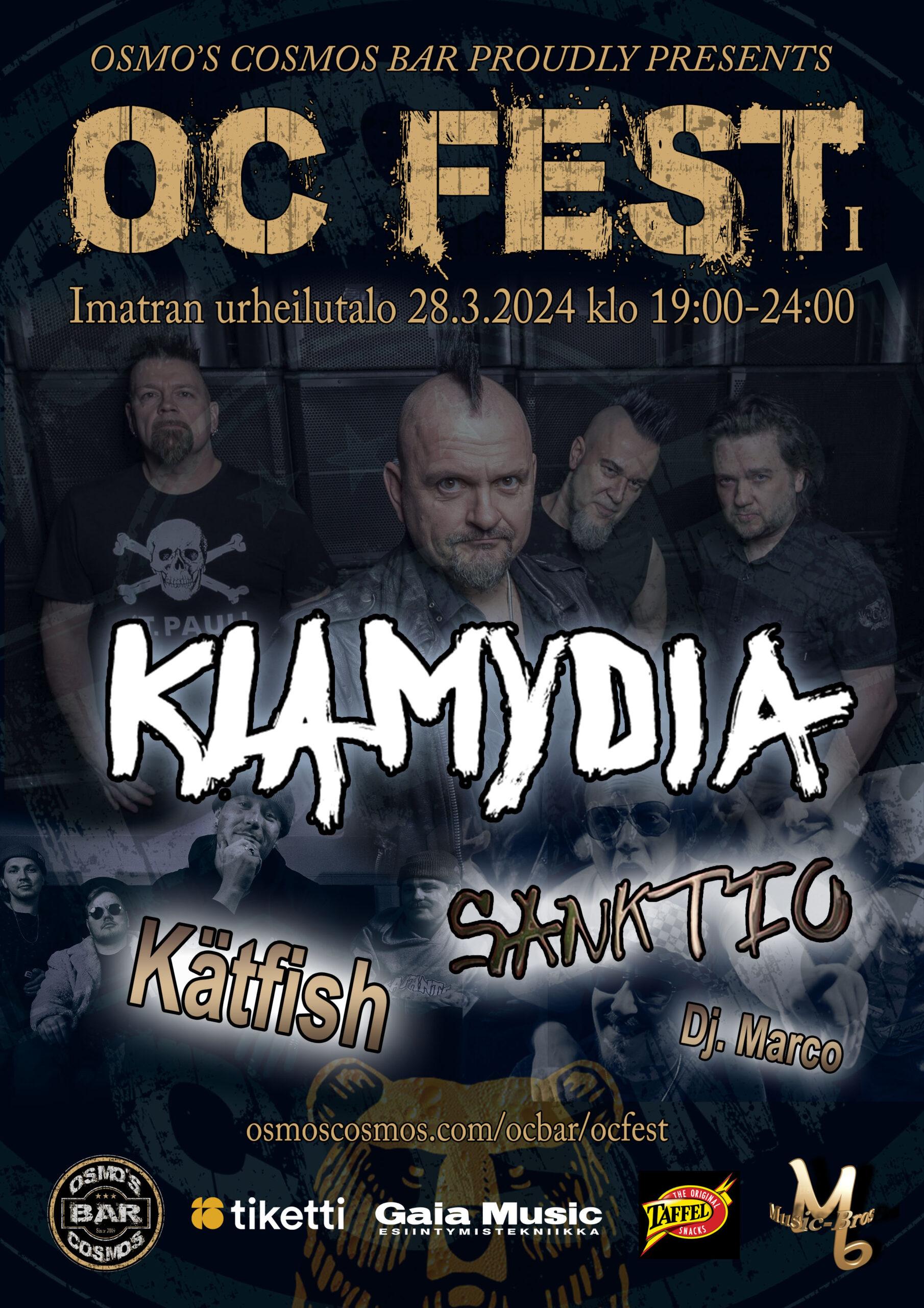 Imatra saa uuden tapahtuman, kun Osmo’s Cosmos Bar järjestää kiirastorstaina 28.3. Imatran urheilutalolla OC FEST -minifestarin. Ensimmäisessä OC FESTissä lavalle nousevat Klamydia, Kätfish ja Sanktio, levymusiikista vastaa Dj. Marco.